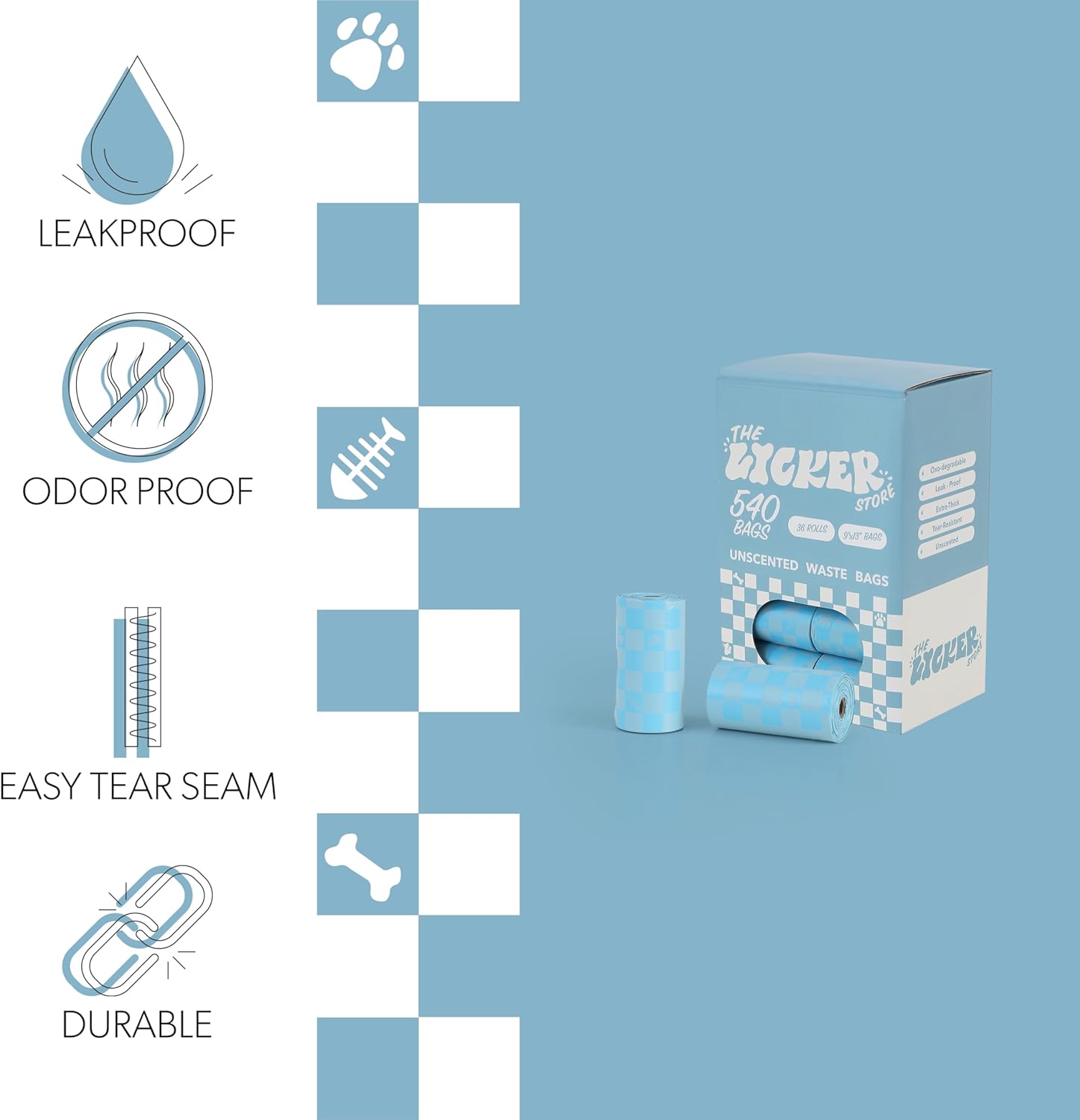 Stock up on the essentials with these convenient 36-roll pack of oxo-degradable dog poop bags. Large size, leakproof bags make cleanups easy. Each roll contains 15 bags, for a total of 540 bags per pack.