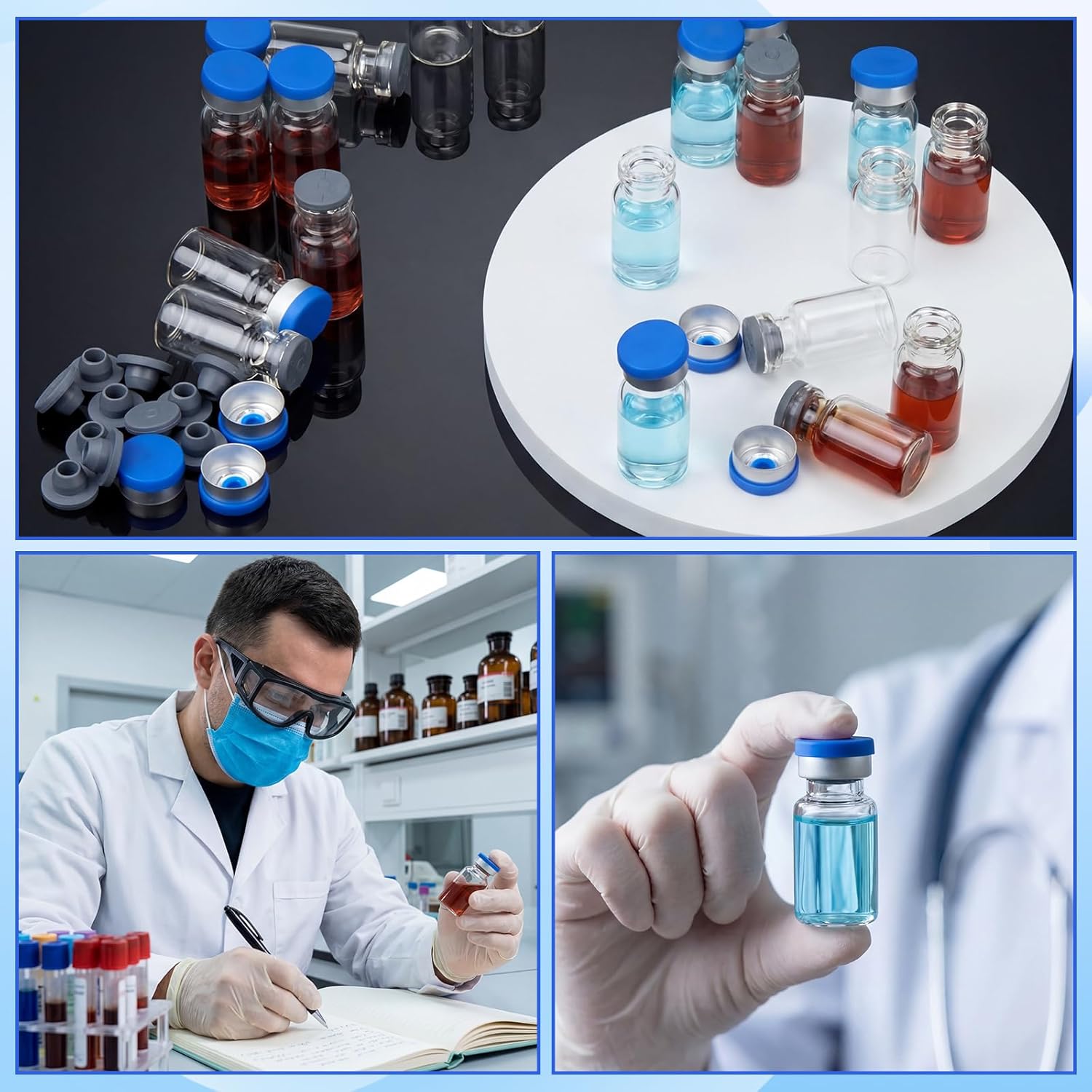 Features: 300 Sets of 2ml glass vials with plastic-aluminum flip caps and self-healing rubber stoppers. Made of borosilicate glass, they are temperature-resistant and chemical-resistant, with a strong seal, making them suitable for storing reagents, essential oils, and other products in both the laboratory and at home. The vials are 16mm in diameter and 31mm in height, with a flexible neck. They can be repeatedly punctured and reused, meeting various needs such as mixing, dilution, and sample storage. Bulk supply eliminates the need for frequent restocking. Specifications: Material: medium borosilicate Color: clear with blue lid Size: 0.63inch/16mm in diameter and 1.22inch/31mm in height Package includes: 300×2 ml glass bottle 300×Plastic-aluminum Flip Caps 300×Rubber Injection Stoppers Notes: Manual measurement, please allow slight errors on size. The color may exist a slight difference due to different screen displays