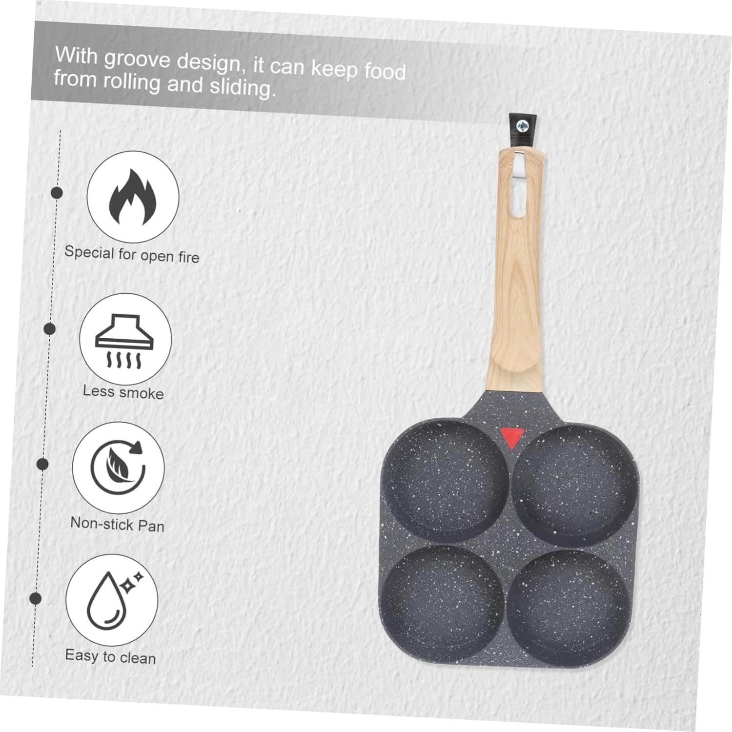 Package List 1 x frying pan Characteristics - Size: About 18.5 x 18.5cm/7.28x7.28in breakfast flat pan. - Material: Aluminum and wooden breakfast skillet pan. - Color: Assorted Color egg cooker pan. - A great egg and pancake cooking tool pancake maker. - With nonstick coating, good helper for you to frying food. Great for cooking fun meals for egg omelette pan. - 4 holes design, convenient to make 4 pancakes at the same time egg patty pan. - Made of quality material for use breakfast frying pan. - Wood handle, heat resistant and non-slip to grip mini frying pan.Goods Informationmini egg pan 4 holes design, wood handle, heat resistant and non-slip to grip.non stick omelette pan A great egg and pancake cooking tool.omelette pan This item is made of material, which enables even and efficient heat distribution.crepes pan It is perfect for making fried eggs, sandwiches, pancakes and omelets, etc