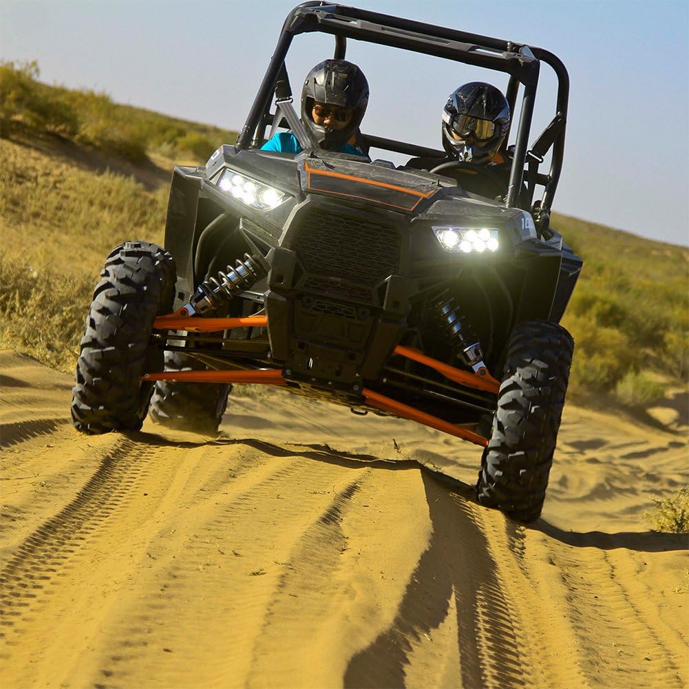 Feature: Power:40W/25W Voltage:DC10-30V Color Temperature:6000K Item Type:Headlight Material Type:Die-cast Aluminum Housing Waterproof:IP67 Socket Type:H4 Color:Black Fitment:2015-17 RZR 900 (All models) ,2014-2022 RZR XP 1000 (All models) ,2016-2021 RZR Turbo (All Models),2016-2019 Polaris General 1000