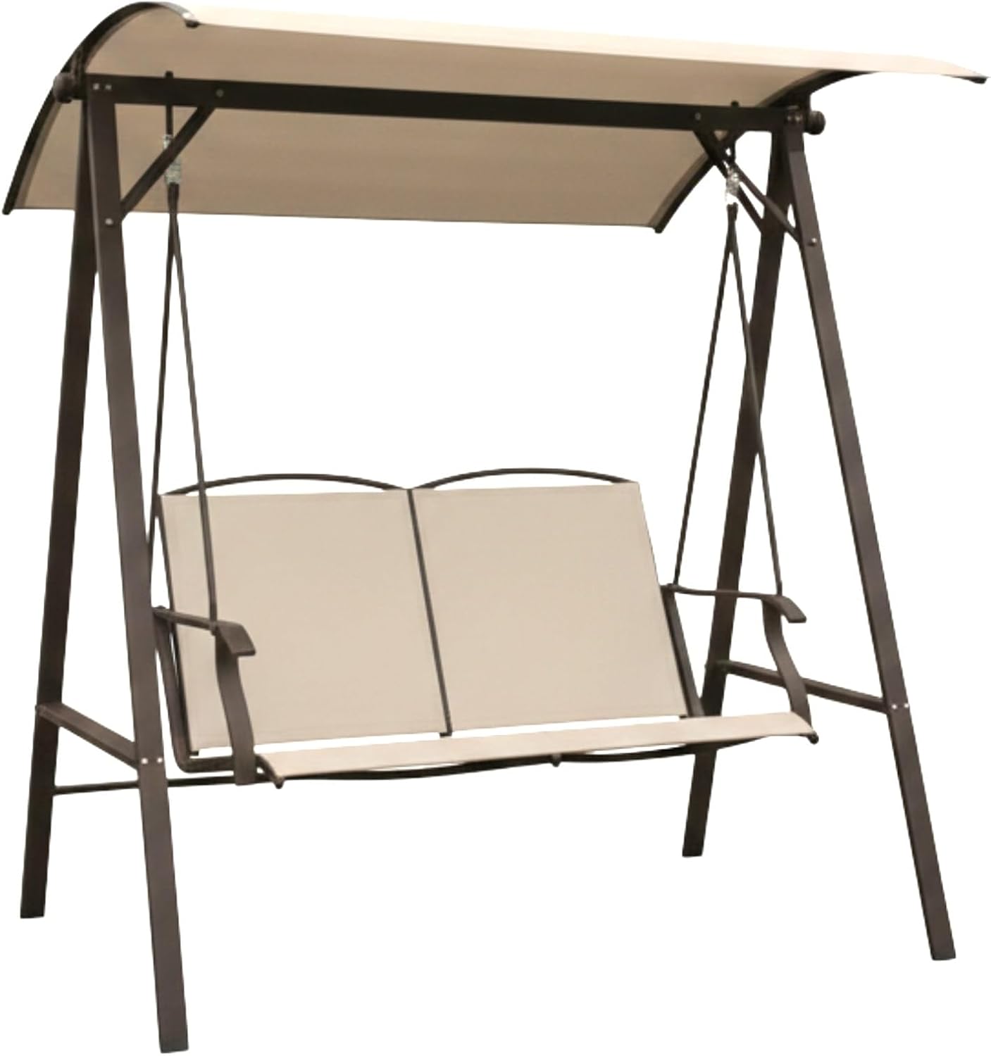 Replacement canopy top compatible with Two Person Sling Swing model SW-RK939, SKU: 810502906 sold at Big Lots and various retailers. Made from 350 denier polyester in Beige, the fabric is UPF 50+ UV Resistant, water resistant, and CPAI-84 fire retardant for outdoor use. Backed by a 1-year limited performance warranty with US-based customer support for fit and product questions. Replacement canopy top only; metal frame not included.