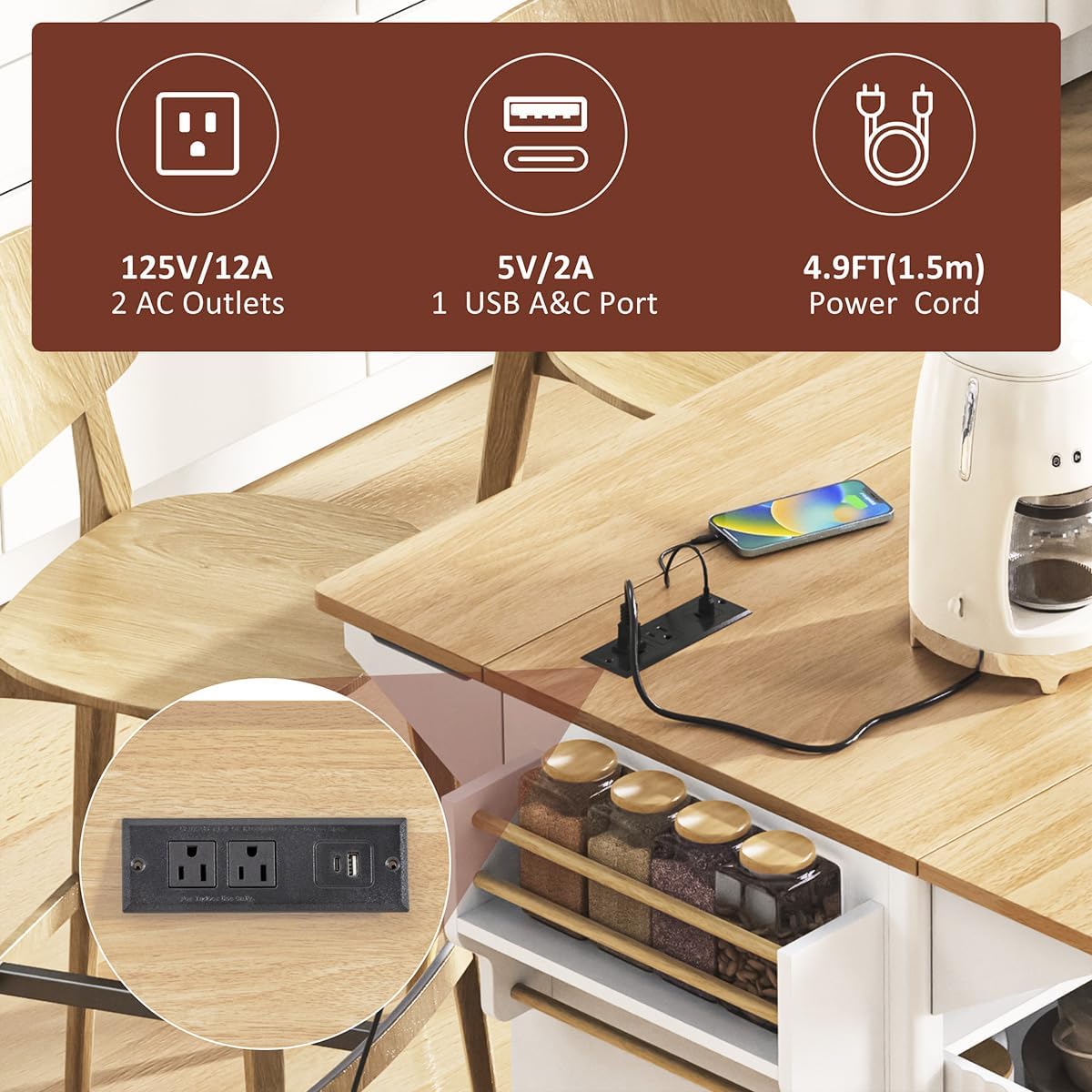 | Model Name | Rolling Kitchen Island with 2 Drop Leaf |